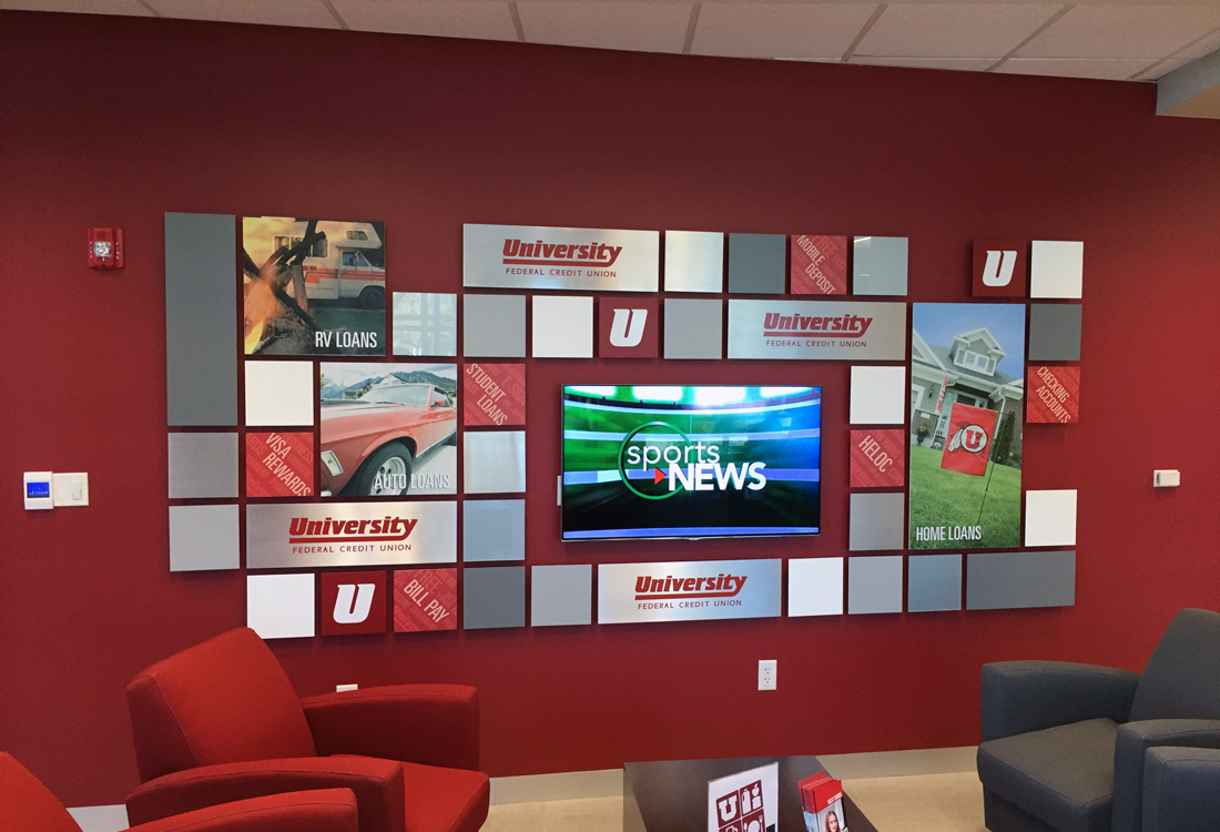 Stippich Design collaborated with the University Federal Credit Union on the development, design, fabrication, and installation of a services recognition wall for their Research Park location.